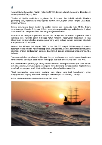 Semua penumpang dalam insiden ini adalah migran asal Indonesia, kata MMEA. Dalam