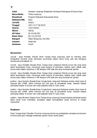 positive - Agus Nompitu (Kepala Dinas Tenaga Kerja Lampung) Partisipasi wanita cufcjp besar di