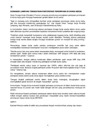 DISNAKER LAMPUNG TINGKATKAN PARTISIPASI PEREMPUAN DI DUNIA KERJA