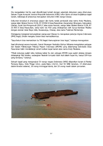 Satuan Tugas Konsulat Jenderal Republik Indonesia (KJRI) Johor Bahru di lokasi terjadinya kapal