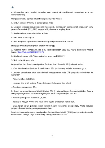 1. Hubungi nomor WhatsApp App BPJS Ketenagakerjaan 0813-800-70175 atau akses melalui