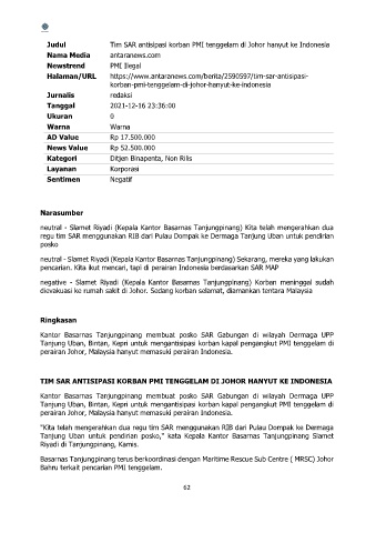 Judul Tim SAR antisipasi korban PMI tenggelam di Johor hanyut ke Indonesia