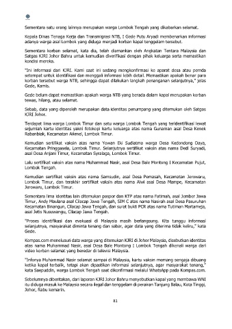 adanya warga asal Lombok yang diduga menjadi korban kapal tenggelam tersebut.