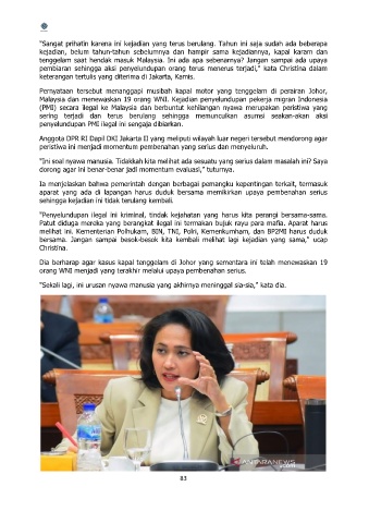 pembiaran sehingga aksi penyelundupan orang terus menerus terjadi," kata Christina dalam