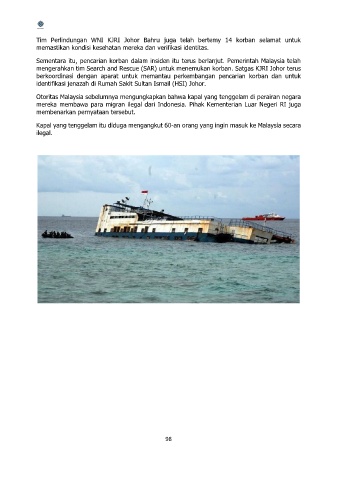 Kapal yang tenggelam itu diduga mengangkut 60-an orang yang ingin masuk ke Malaysia secara