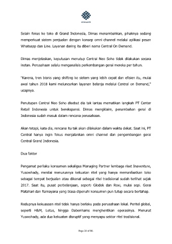 Penutupan Central Neo Soho disebut dia tak lantas mematikan langkah PT Center