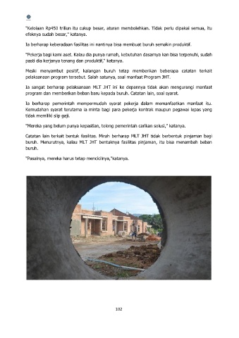 buruh. Menurutnya, kalau MLT JHT bentuknya fasilitas pinjaman, itu bisa menambah beban
