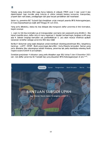 Pekerja yang menerima BSU juga harus bekerja di wilayah PPKM Level 3 dan Level 4 dan