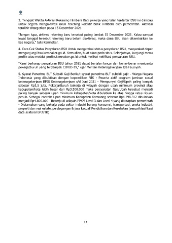 3. Tenggat Waktu Aktivasi Rekening Himbara Bagi pekerja yang telah terdaftar BSU ini diimbau