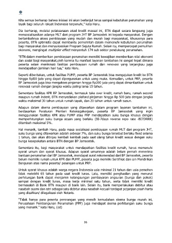 "BTN dalam memberikan pembiayaan perumahan memiliki kewajiban memberikan nilai ekonomi