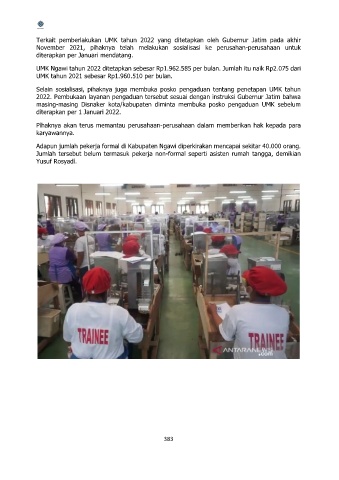 UMK Ngawi tahun 2022 ditetapkan sebesar Rp1.962.585 per bulan. Jumlah itu naik Rp2.075 dari