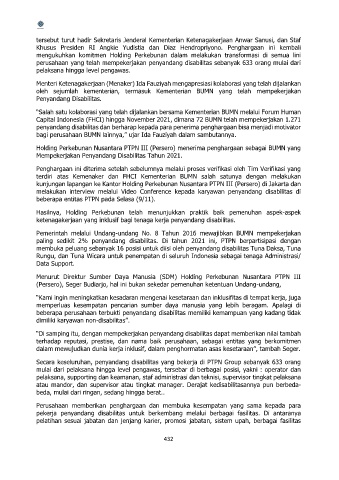 Secara keseluruhan, penyandang disabilitas yang bekerja di PTPN Group sebanyak 633 orang