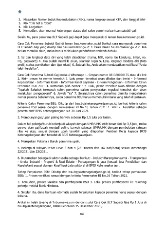 Selain itu, para penerima BLT Subsidi gaji dapat juga mengecek di laman bsu.kemnaker.go.id.