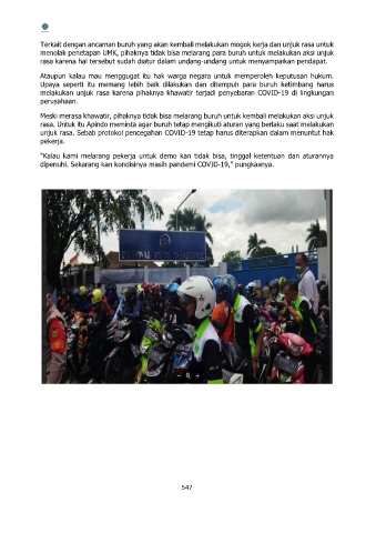 unjuk rasa. Sebab protokol pencegahan COVID-19 tetap harus diterapkan dalam menuntut hak