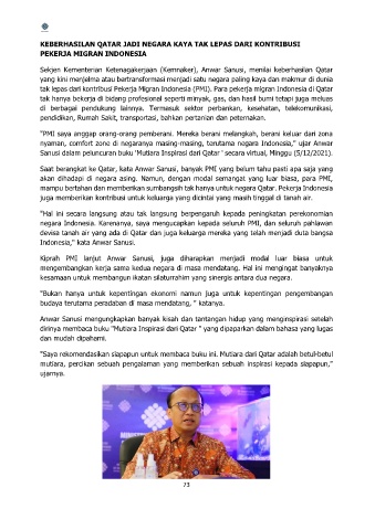 tak lepas dari kontribusi Pekerja Migran Indonesia (PMI). Para pekerja migran Indonesia di Qatar