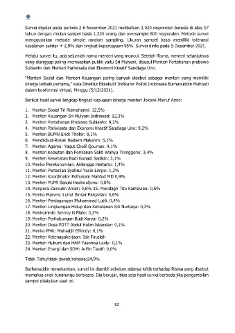 Berikut hasil survei lengkap tingkat kepuasan kinerja menteri Jokowi-Ma'ruf Amin: