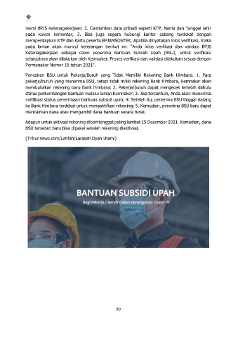 notifikasi status penerimaan bantuan subsidi upah; 4. Setelah itu, penerima BSU tinggal datang