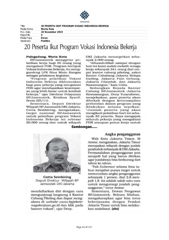 Title 20 PESERTA IKUT PROGRAM VOKASI INDONESIA BEKERJA Media Name Warta Kota Pub. Date 26 November 2019 Page/URL 2 Media Type Koran Sentiment Positive Sambungan….. Page 14 of 127.