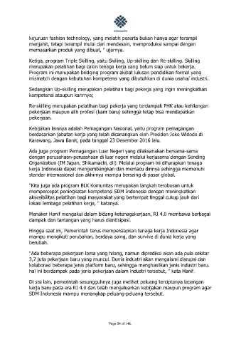 kerja baru pada era RI 4.0 dan telah mengeluarkan kebijakan maupun program agar