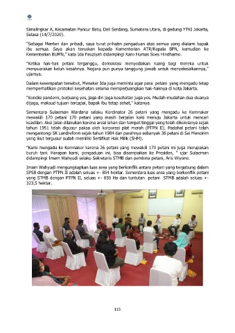 buruh tani. Harapan kami, pengaduan ini, bisa disampaikan ke Presiden, " ujar Sulaeman