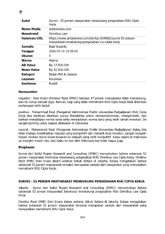 Judul Survei : 52 persen masyarakat mendukung pengesahan RUU Cipta