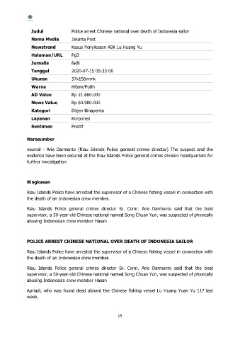 Judul Police arrest Chinese national over death of Indonesia sailor