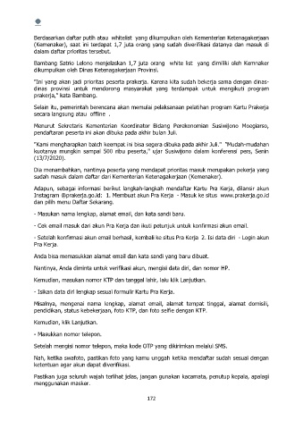 (Kemenaker), saat ini terdapat 1,7 juta orang yang sudah diverifikasi datanya dan masuk di