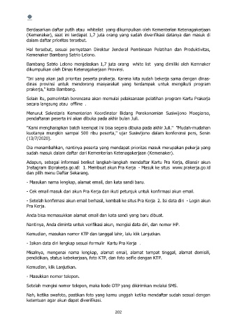 (Kemenaker), saat ini terdapat 1,7 juta orang yang sudah diverifikasi datanya dan masuk di