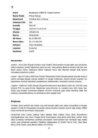 positive - Heriy Zaini (Kepala Disnaker Kota Cimahi) Hand sanitizer ini jadi salah satu kebutuhan