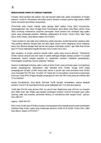 usaha yang terdampak pandemi. Pelatihan dilaksanakan di Cimahi Techno Park, Jalan Raya