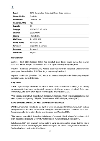 negative - Said lqbal (Presiden KSPI) Kedua isu tersebut merupakan isu besar yang menjadi