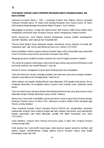Peraturan Presiden Nomor 76 tahun 2020. Indonesia Corruption Watch (ICW) mendesak agar