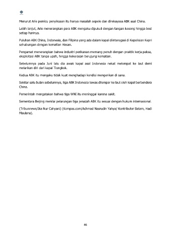 Menurut Arie pemicu penyiksaan itu hanya masalah sepele dan direkayasa ABK asal China.