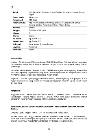 positive - Christina Aryani (Anggota Komisi I DPR-RI) Pengiriman PMI secara ilegal merupakan