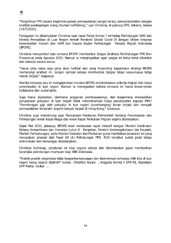 sindikat perdagangan orang (human trafficking)," ujar Christina, di gedung DPR, Jakarta, Selasa