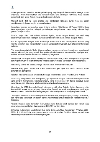penolakannya terhadap klaster ketenagakerjaan.
