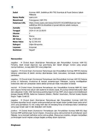 Judul Komnas HAM: Sedikitnya 900 TKI Dicambuk di Pusat Detensi Sabah