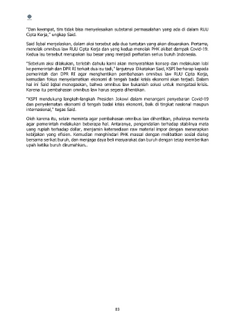 ke pemerintah dan DPR RI terkait dua isu tadi," lanjutnya Dikatakan Said, KSPI berharap kepada