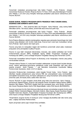 evaluasi yang dilakukan oleh Komite Cipta Kerja. Perpres hasil revisi ingin memastikan bahwa