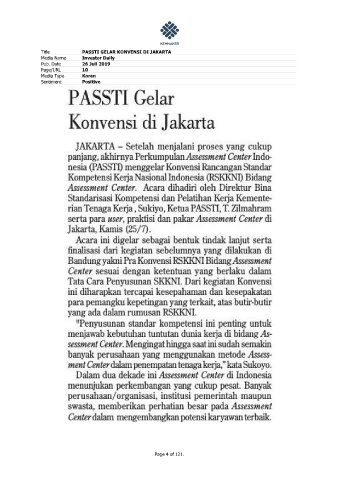 Title PASSTI GELAR KONVENSI DI JAKARTA Media Name Investor Daily Pub. Date 26 Juli 2019 Page/URL 10 Media Type Koran Sentiment Positive Page 4 of 121.