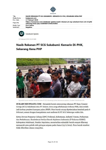 Title NASIB REKANAN PT SCG SUKABUMI: KEMARIN DI-PHK, SEKARANG KENA PHP
