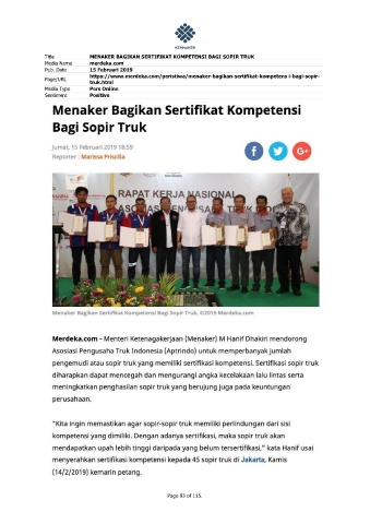Title MENAKER BAGIKAN SERTIFIKAT KOMPETENSI BAGI SOPIR TRUK