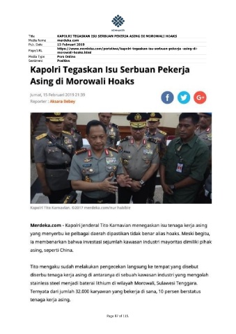 Title KAPOLRI TEGASKAN ISU SERBUAN PEKERJA ASING DI MOROWALI HOAKS