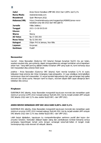 positive - Anies Baswedan (Gubernur DKI Jakarta) Kami menilai kenaikan 5,1% ini suatu