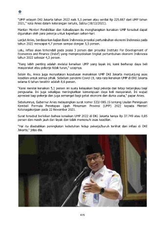 "UMP wilayah DKI Jakarta tahun 2022 naik 5,1 persen atau senilai Rp 225.667 dari UMP tahun