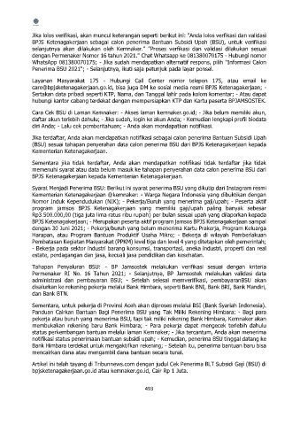 status perkembangan bantuan melalui laman Kemnaker; - Jika tercantum, Anda akan menerima