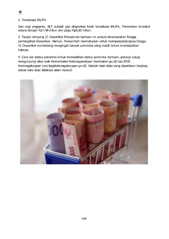 Dari segi anggaran, BLT subsidi gaji dilaporkan telah terealisasi 84,9%. Persentase tersebut