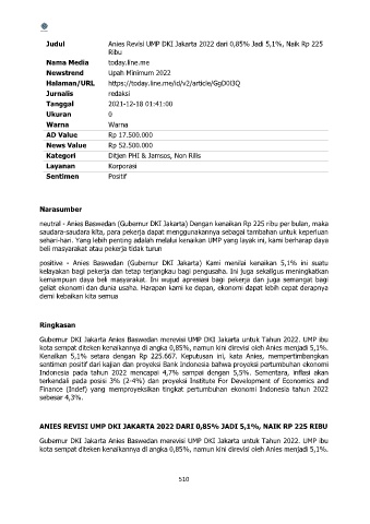 Judul Anies Revisi UMP DKI Jakarta 2022 dari 0,85% Jadi 5,1%, Naik Rp 225