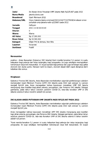 positive - Anies Baswedan (Gubernur DKI Jakarta) Kami menilai kenaikan 5,1 persen ini suatu
