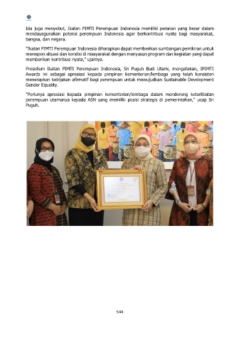 Ida juga menyebut, Ikatan PIMTI Perempuan Indonesia memiliki peranan yang besar dalam